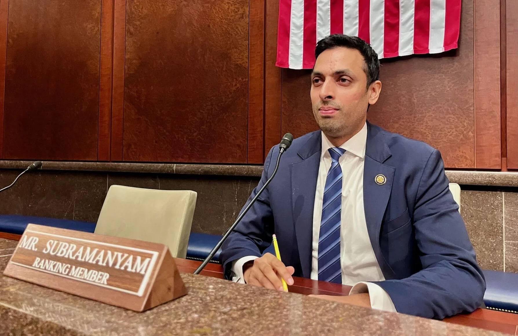 Rep. Suhas Subramanyam (D-VA-10) attends a subcommittee hearing at the U.S. Capitol.
