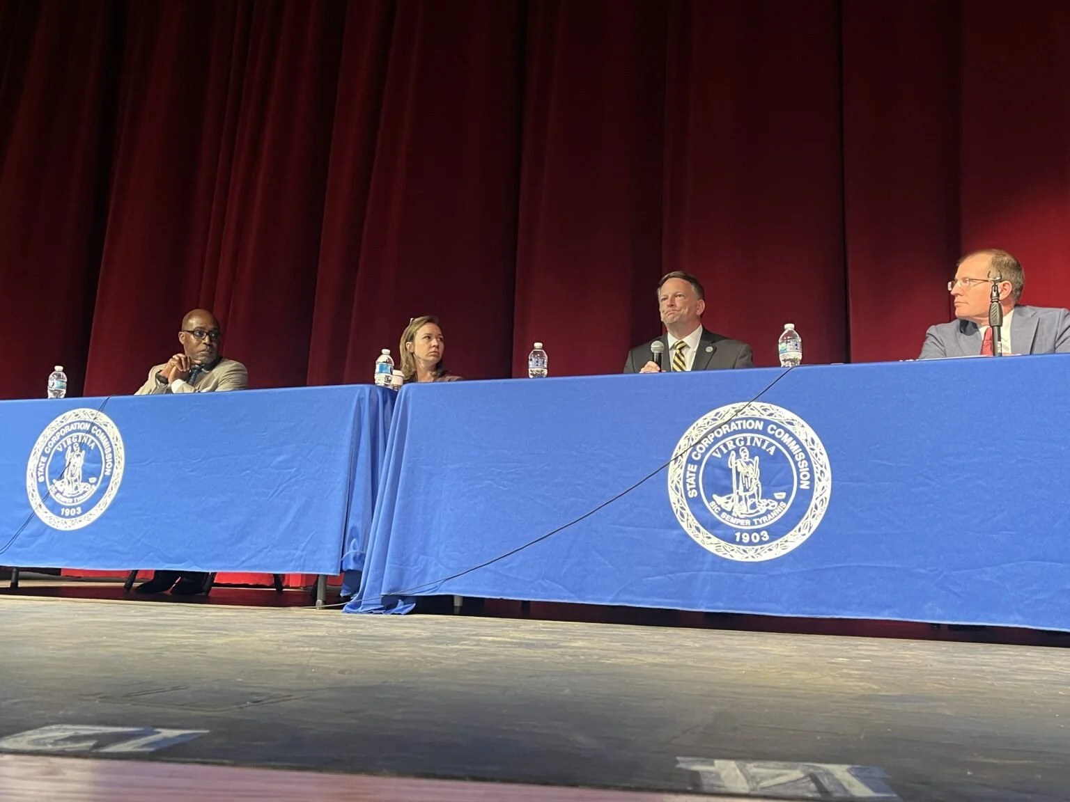 Commissioners of the State Corporation Commission listen to public testimony in Loudoun County.
