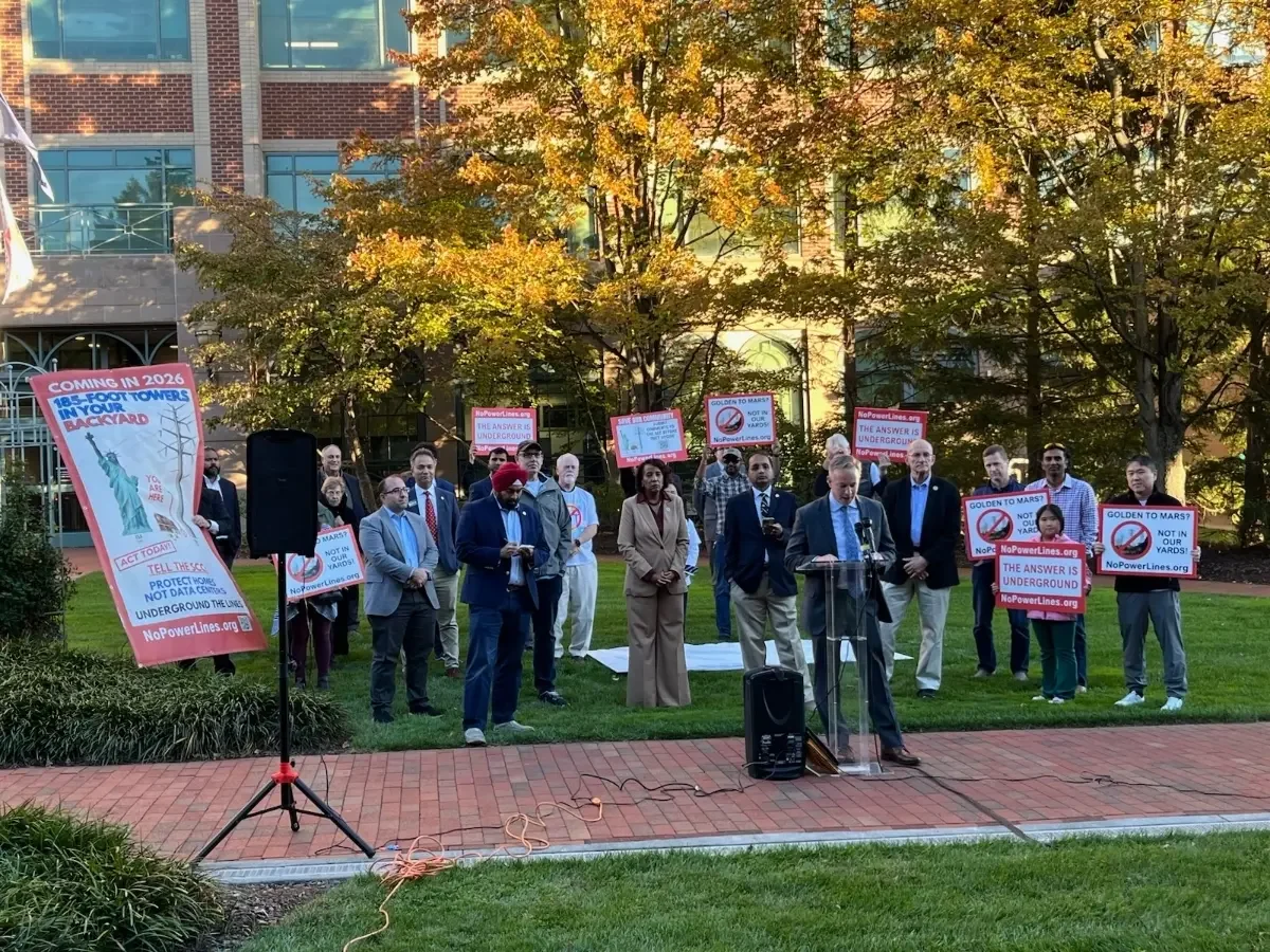 Loudoun County officials and residents held a news conference to put forward a partial underground route for the Golden to Mars power line project.