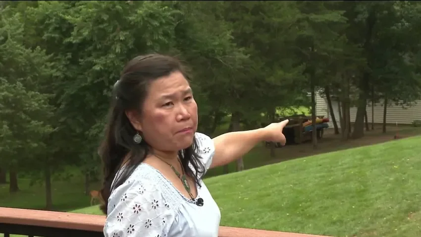 Will Taggart and Vicky Hu standing in the backyard of their Loudoun Valley Estates home, where Dominion wants to build a tower as part of the proposed Golden to Mars transmission line project.